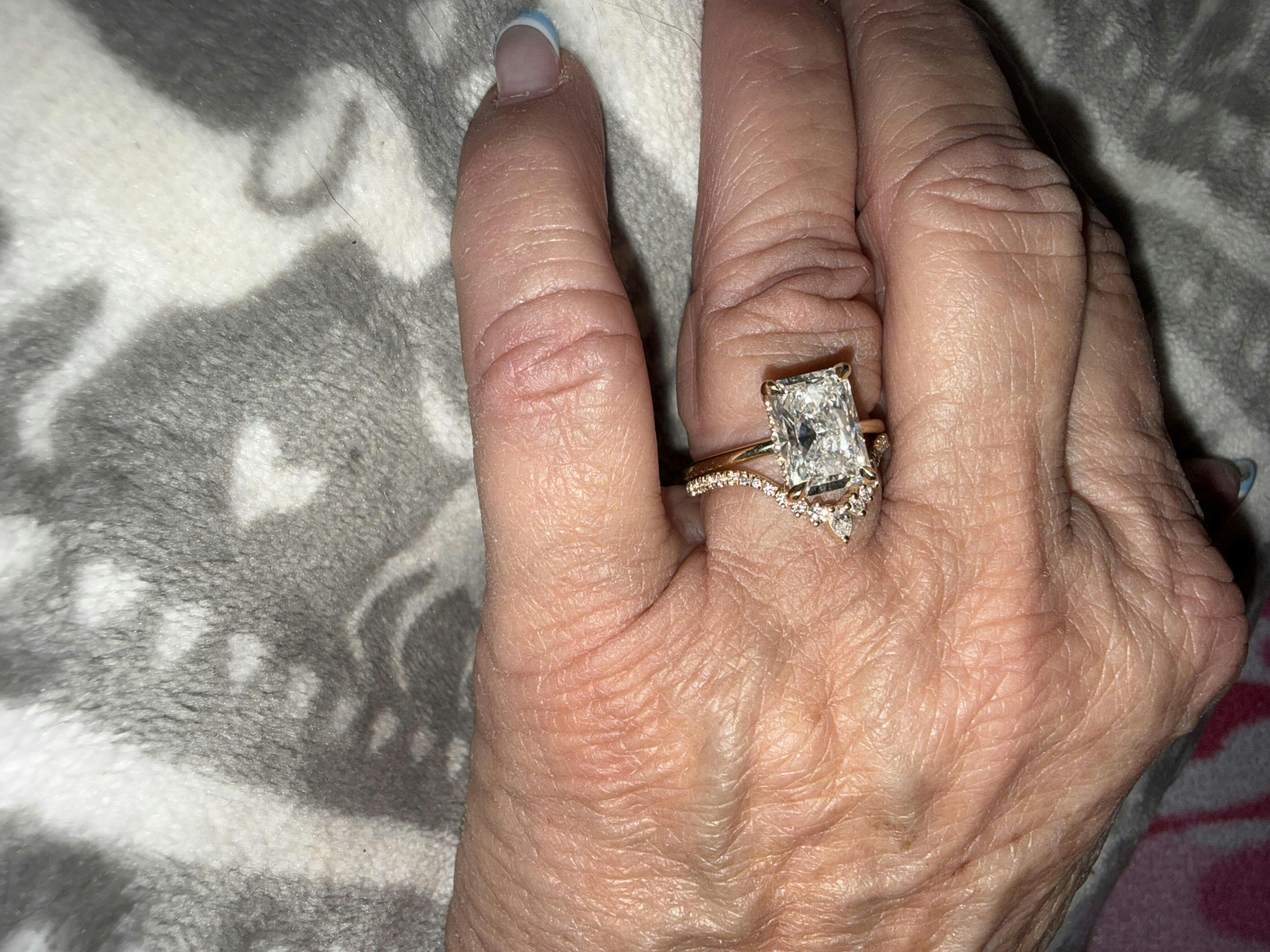 I cannot look away from this amazing ring. I went with a 1.5 carat stone and i think it looks perfect on my hand (size 9.25 band for reference). photos truly don’t do justice. I’m the talk of my office currently, everyone keeps snatching my hand up to look at it. 🥰 a lovely ring to wear forever.