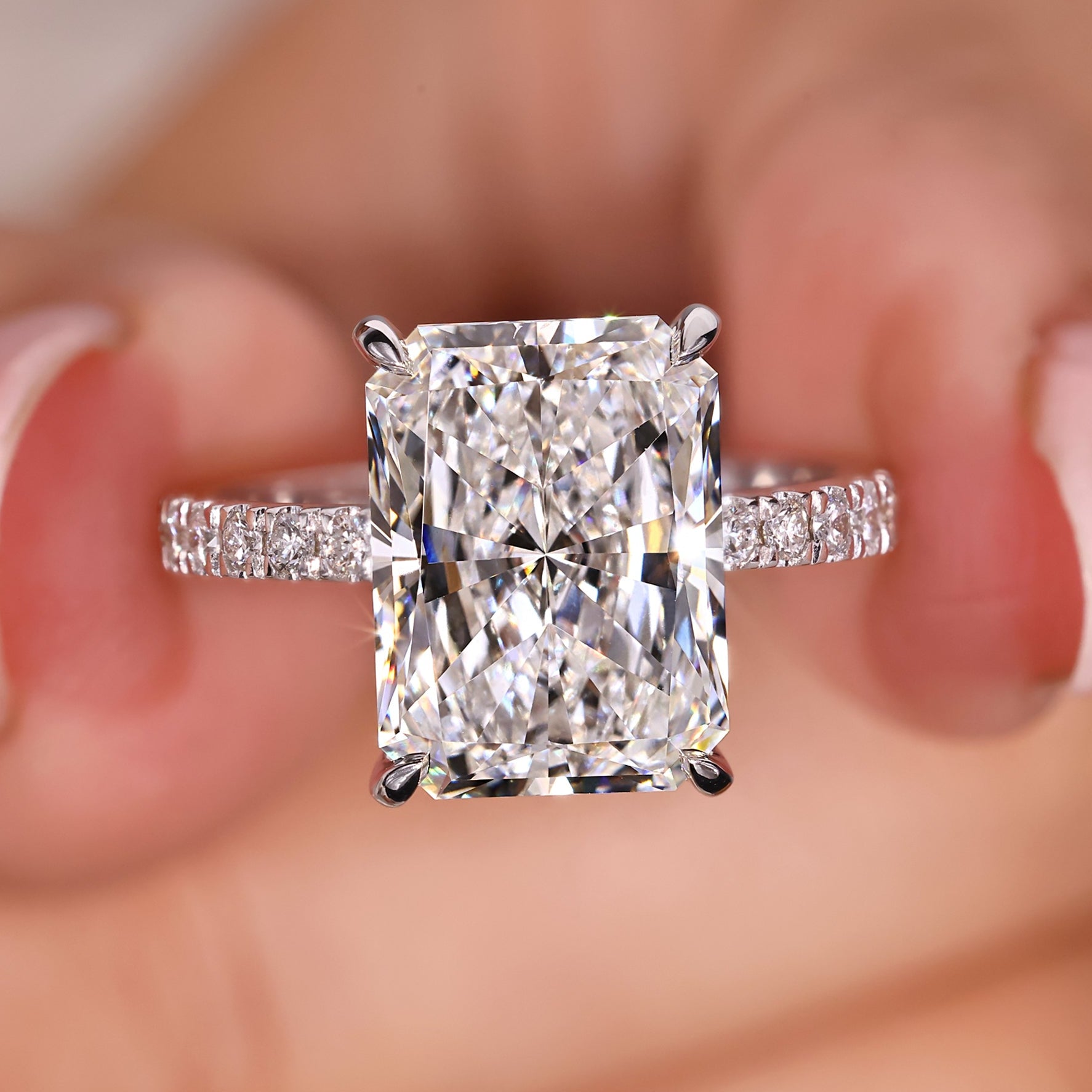4 Carat Radiant Cut Diamond Ring Pave Setting