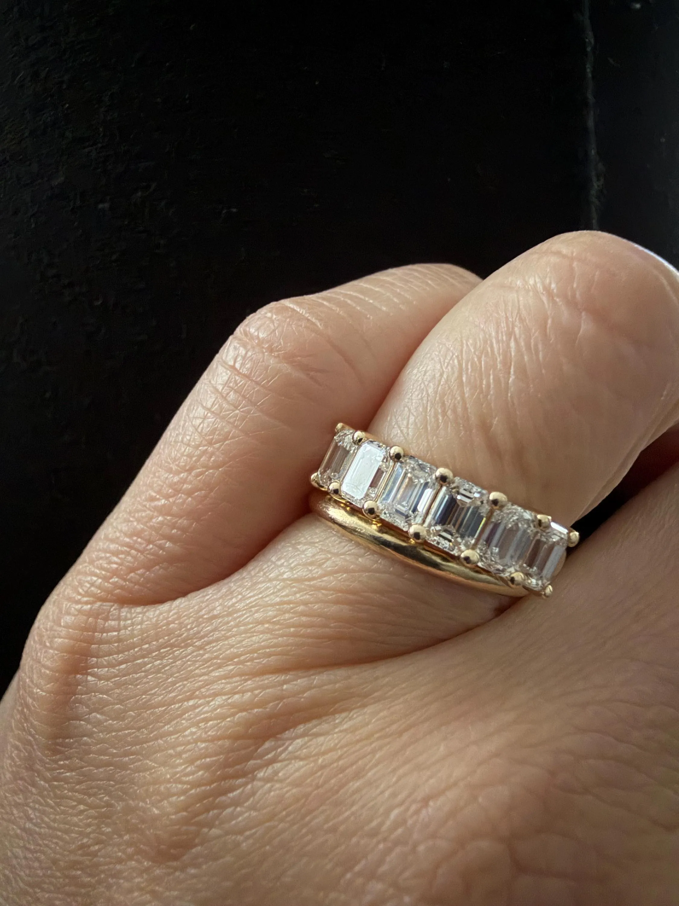 When you buy a wedding band, it should reflect your style and values. This emerald diamond wedding band does just that, crafted to fit your life, not just your finger. Ready to make it yours? Explore the world of handmade bands and let your story begin with a piece that truly fits.
