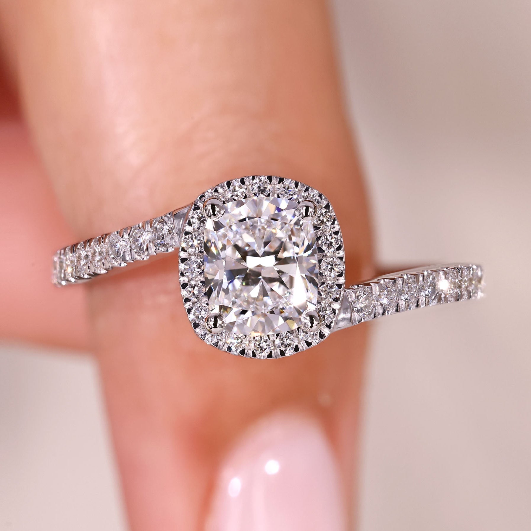 Halo Style Cushion Cut Diamond Ring