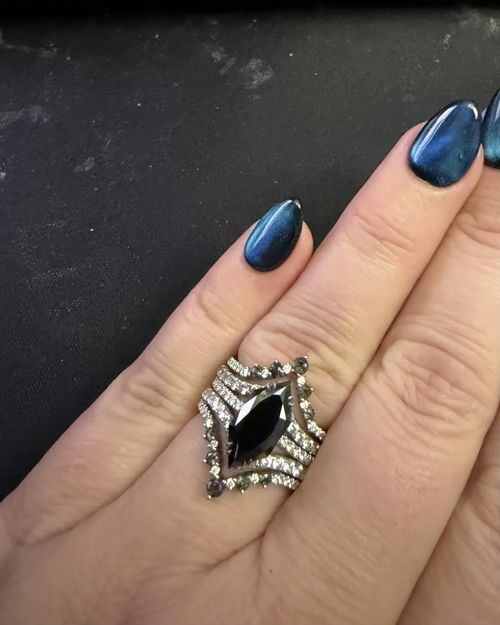 Dutch Marquise Engagement Ring with Black Moissanite