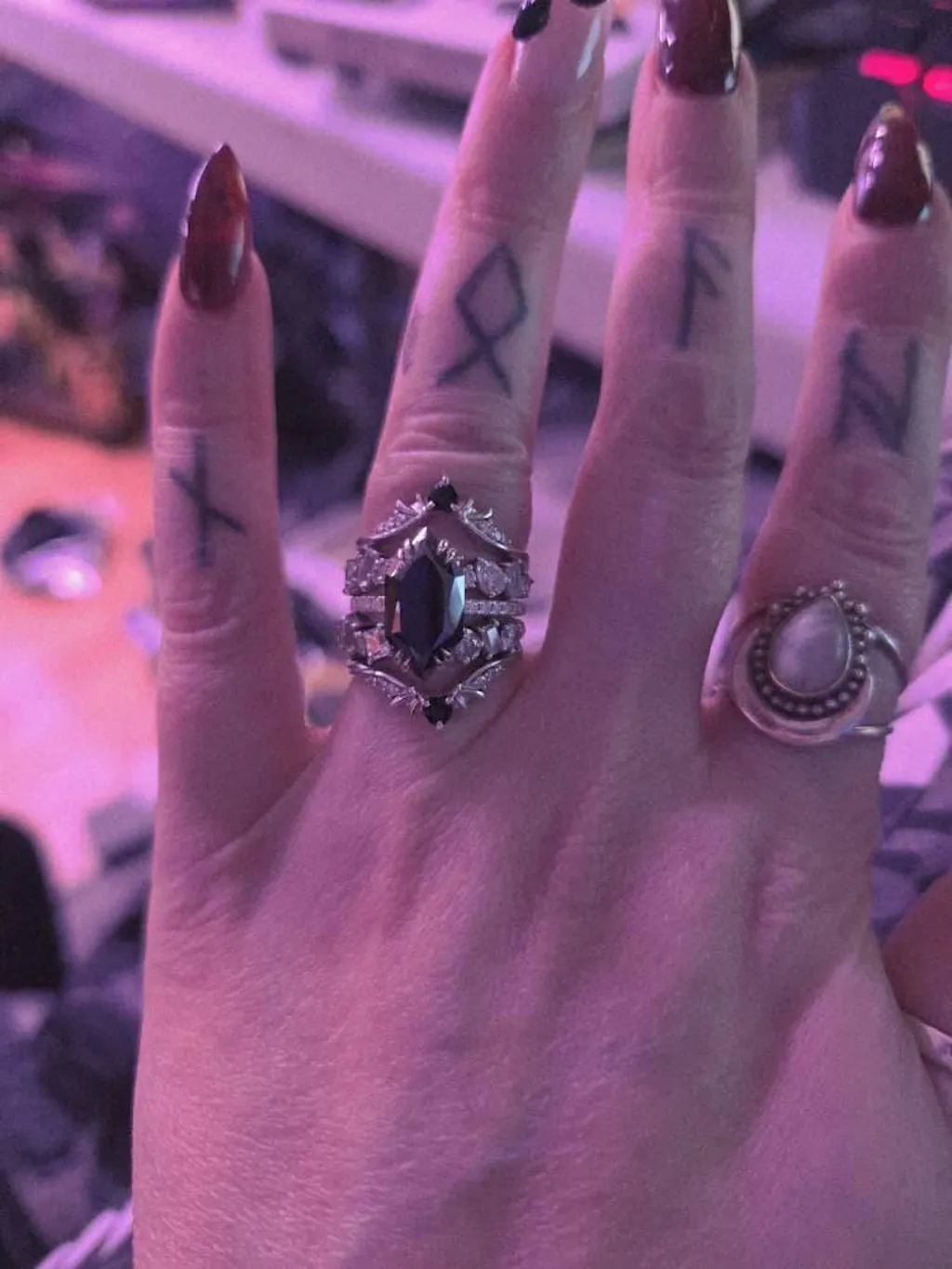 - Engagement Ring paired with Black Moissanite Ring
