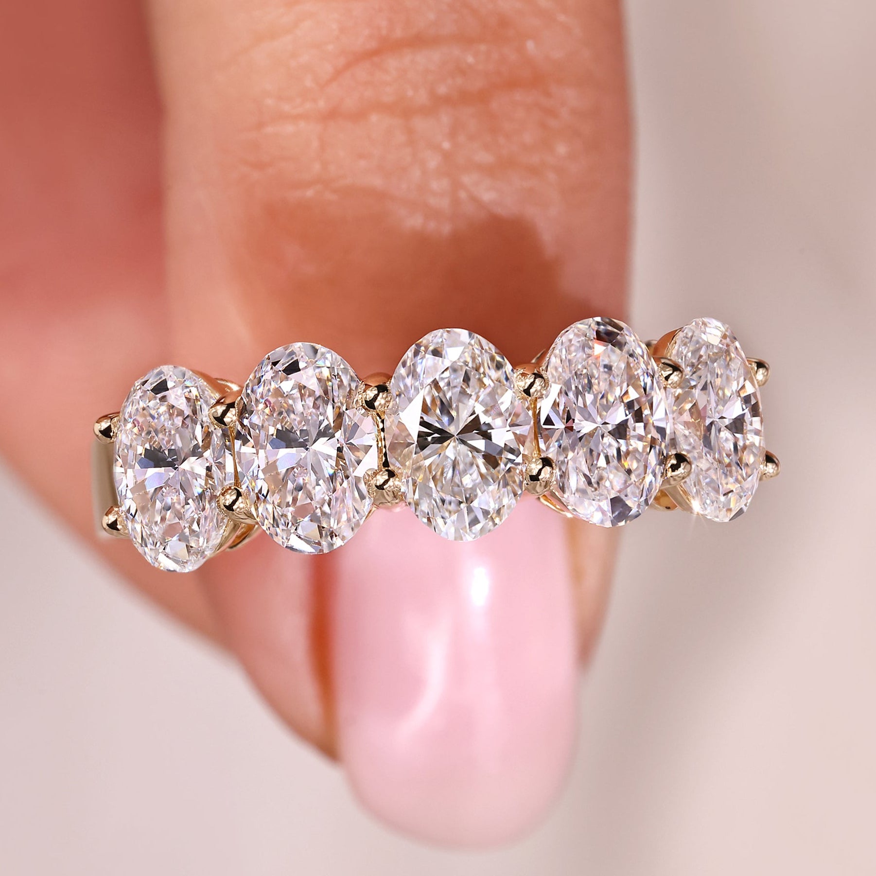 Five Stone Oval Diamond Wedding Band