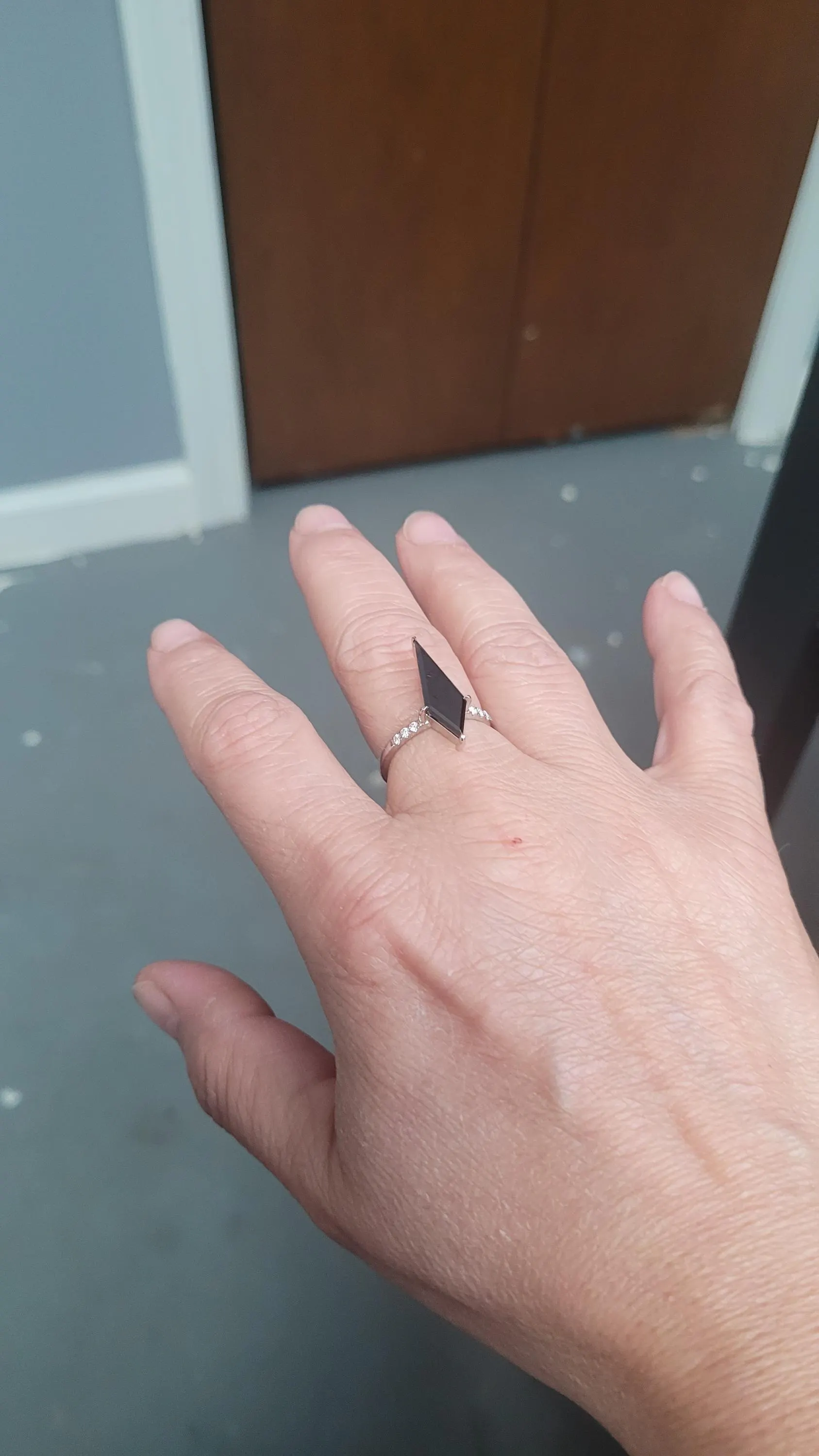 Additionally, anyone who dares to be unique will find great present from this Long Kite Cut Moissanite Ring. From proposals to anniversaries, its striking black Moissanite design complements a handcrafted pave engagement ring style to be perfect for milestone events. Show a loved one a ring honoring uniqueness and grace.