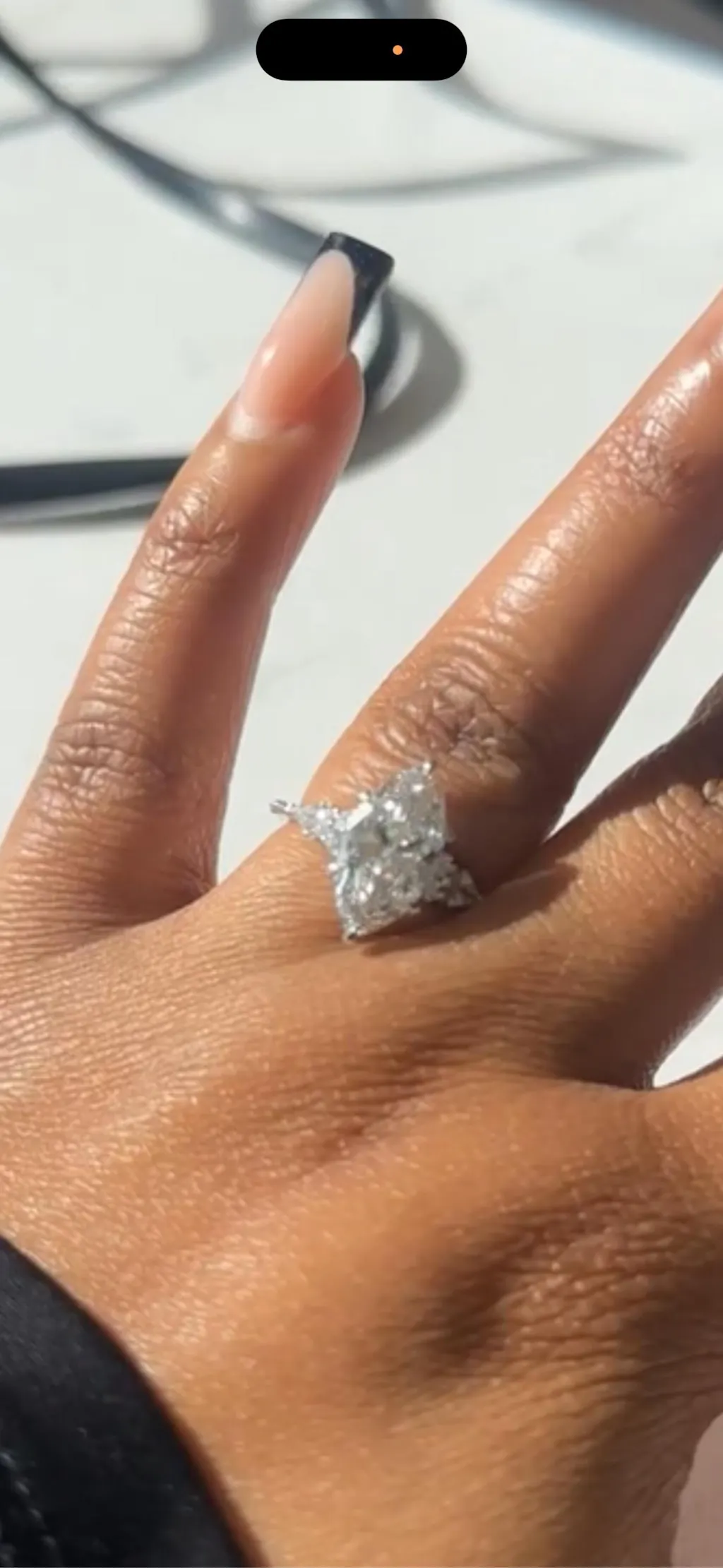 Stable Grip: A six claw prong layout wraps around the points of the marquise stone to keep it safe.