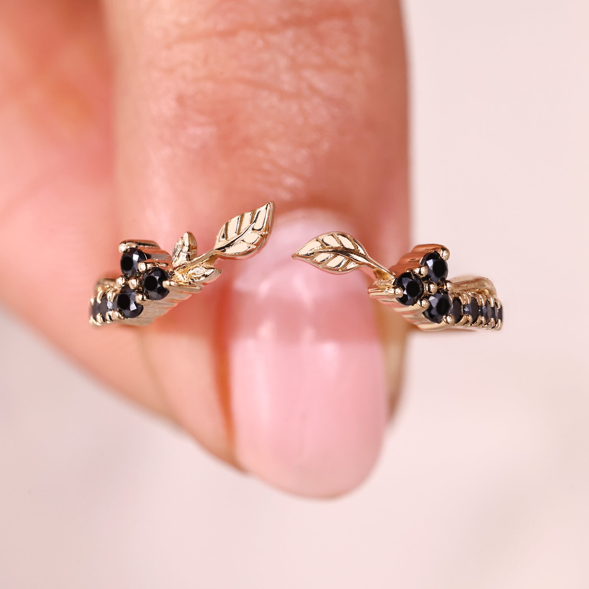 Nature Inspired Round Cut Black Moissanite Wedding Band