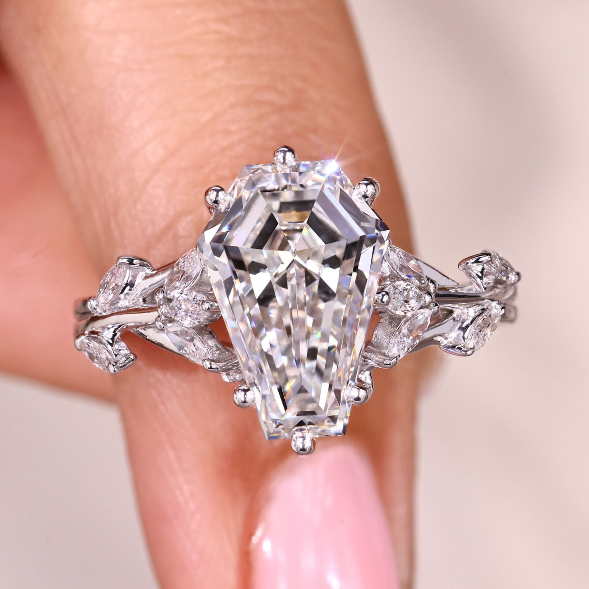Nature Inspired Coffin Cut Diamond Engagement Ring