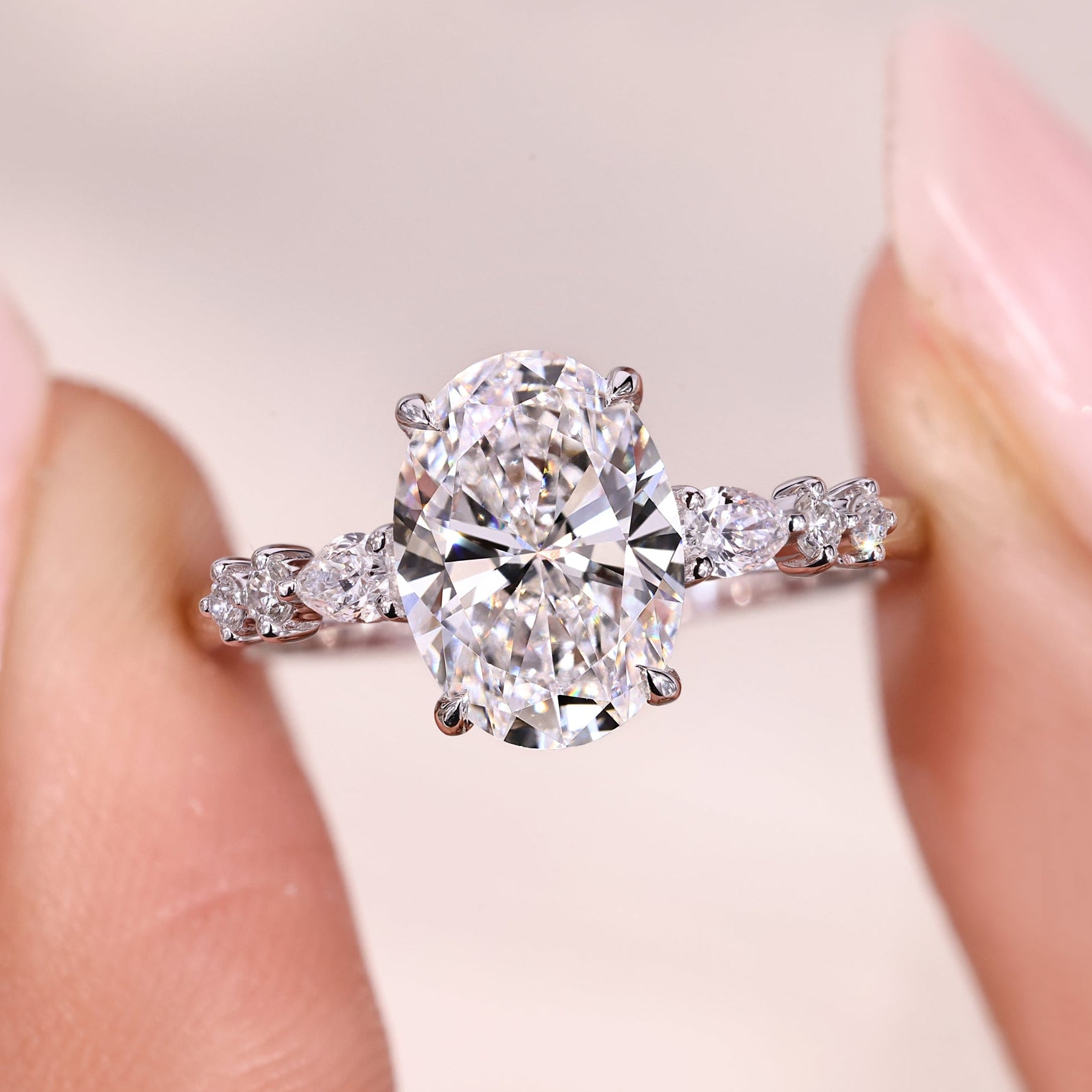 Oval Cut Seven Stone Diamond Ring With Pear Side Stones