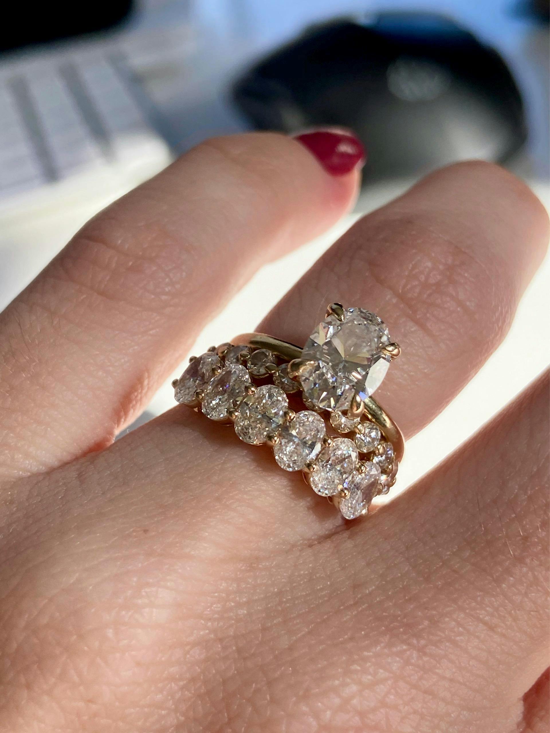Select from many metal finishes and diamond sizes to customize your oval diamond band. Add your special touch to produce a really one-of- a-kind work of art. This personalized wedding band guarantees that the design captures your style and sentiment by letting you customize it to your tastes.