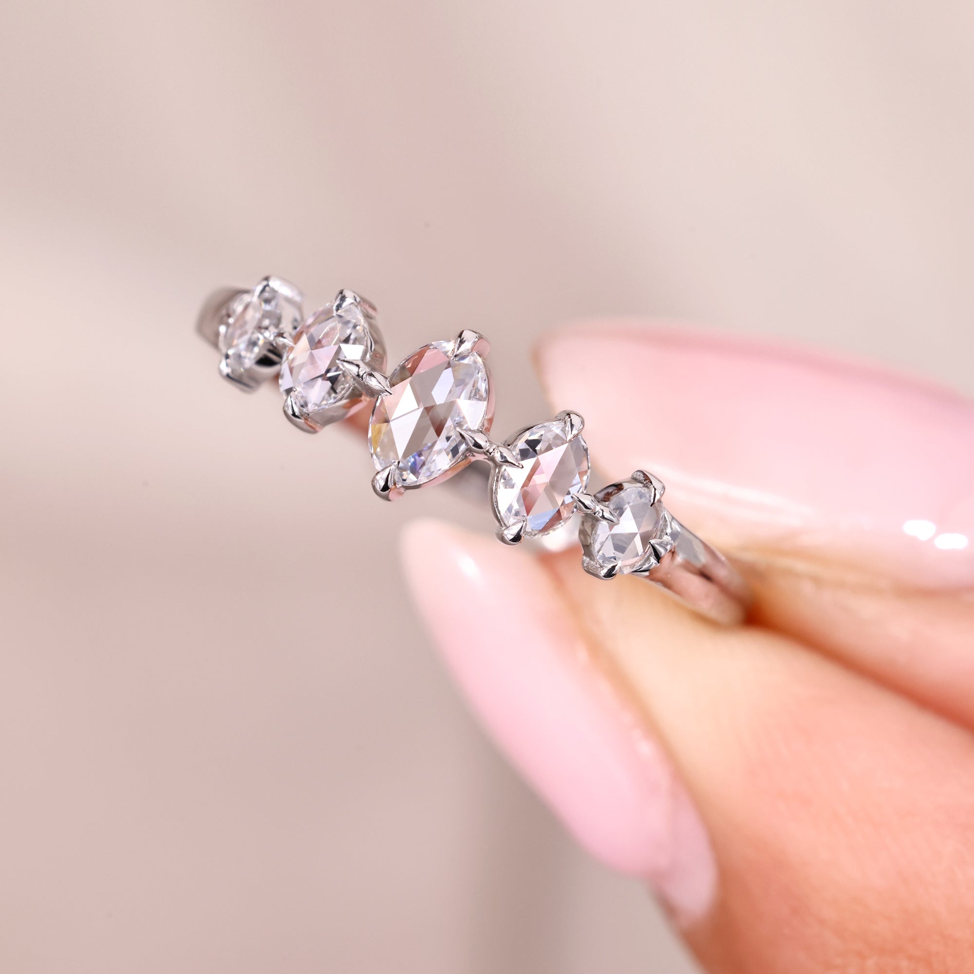 Oval Rose Cut Five Stone Wedding Band