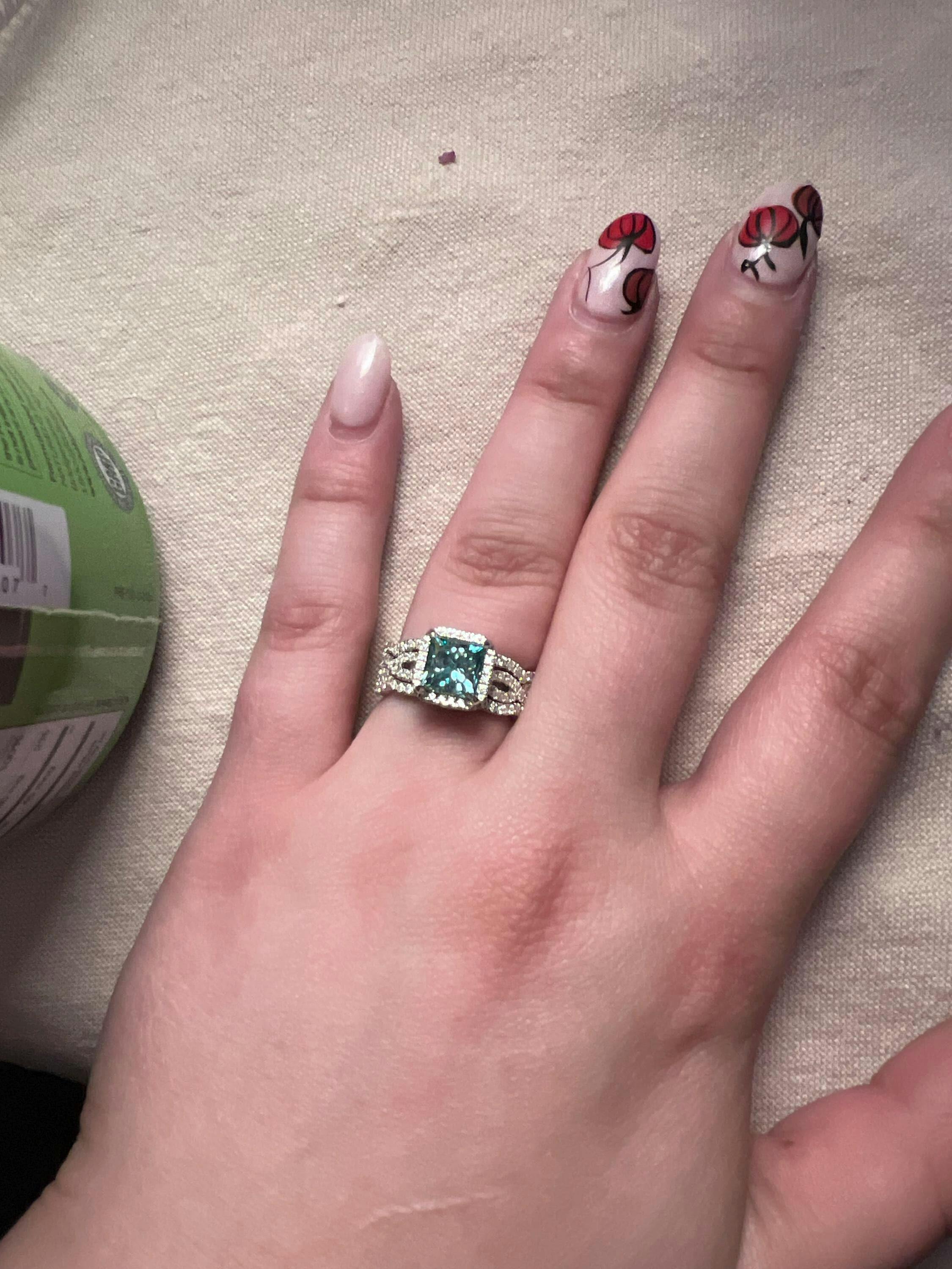 - High-quality princess cut bridal set with Halo Setting and Cyan Blue Princess Cut Moissanite