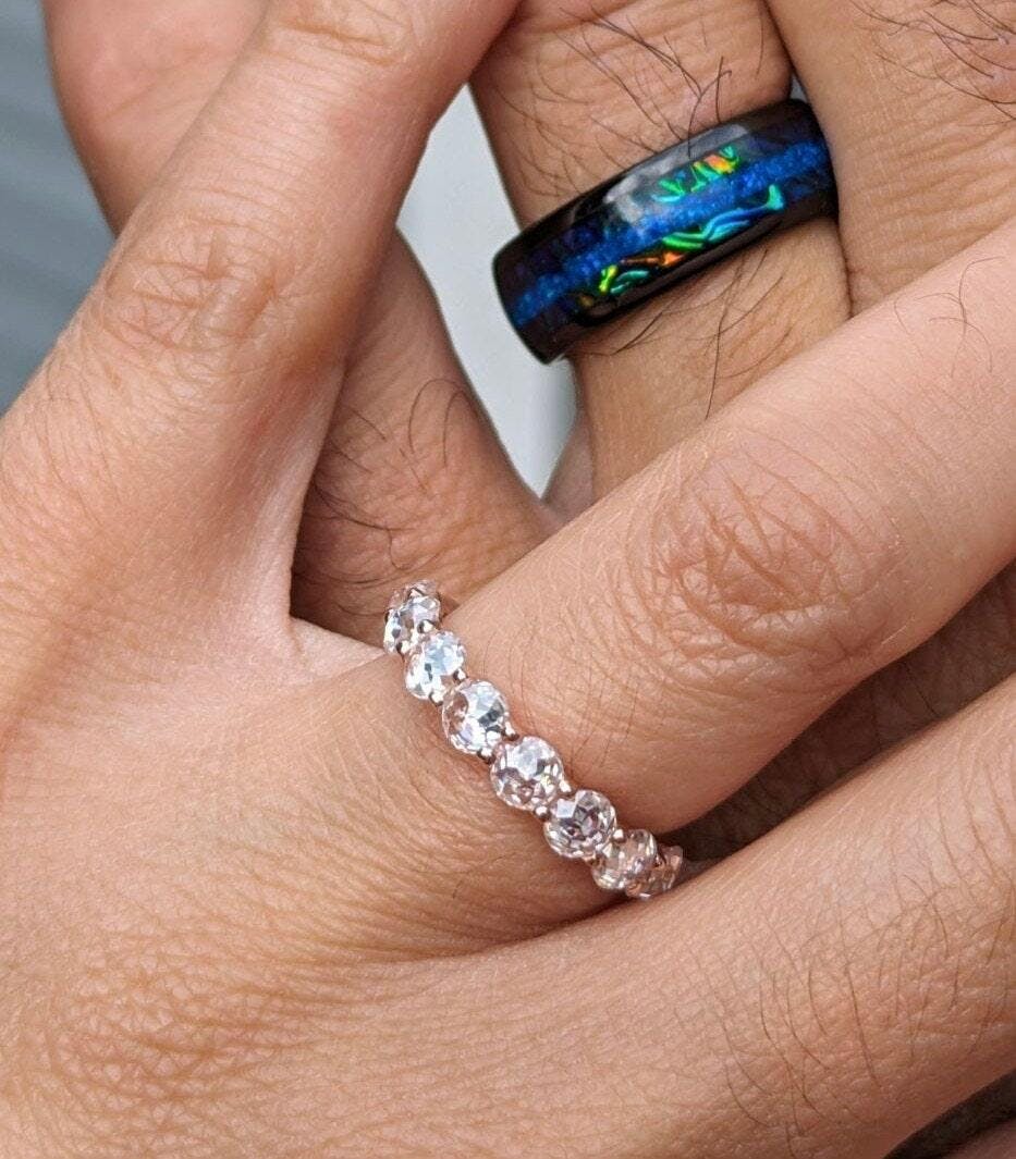 Select among the several stones from the Moissanite band or Stone. Choose your desired setting, maybe a Moissanite gold wedding band or a white gold band. Custom engraving your handcrafted jewelry will provide a personal touch.